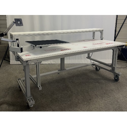 Un plan de travail sur mesure en profilés réglable en hauteur avec plateau personnalisable est une surface de travail construite à partir de profilés aluminium, dont la hauteur peut être ajustée pour s’adapter aux besoins ergonomiques de l’utilisateur. Le plateau est fabriqué dans des matériaux adaptés aux usages spécifiques, optimisant ainsi la résistance, le confort, l’hygiène ou d’autres propriétés selon l’activité. Ce type de plan de travail permet de travailler assis ou debout et peut être configuré selon les dimensions et besoins particuliers de chaque poste.
