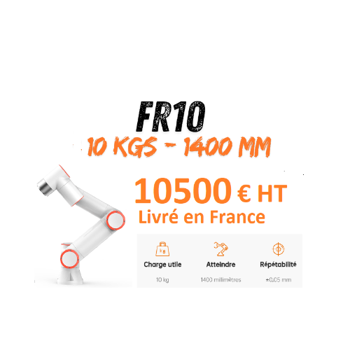 • Conçu pour manipuler des objets plus lourds, le FR10 est idéal pour les tâches industrielles nécessitant un robot capable de soulever et manipuler des charges importantes tout en restant sécurisé.