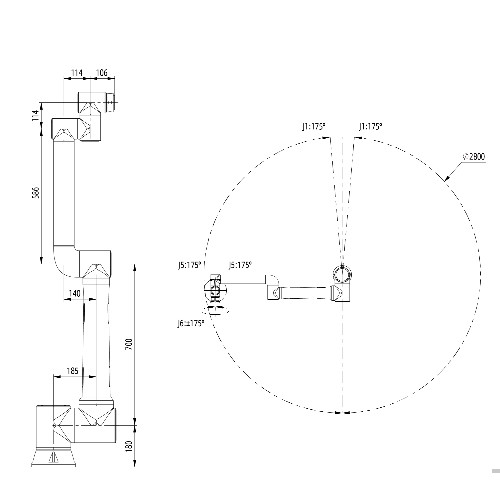 • Degrés de liberté : 6 axes, assurant des mouvements polyvalents et fluides, même avec des objets plus lourds et volumineux.