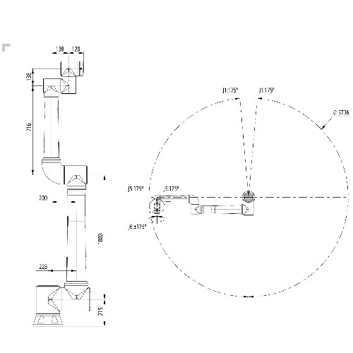 • Degrés de liberté : 6 axes, permettant une flexibilité de mouvement maximale pour atteindre des positions complexes dans des environnements exigeants.