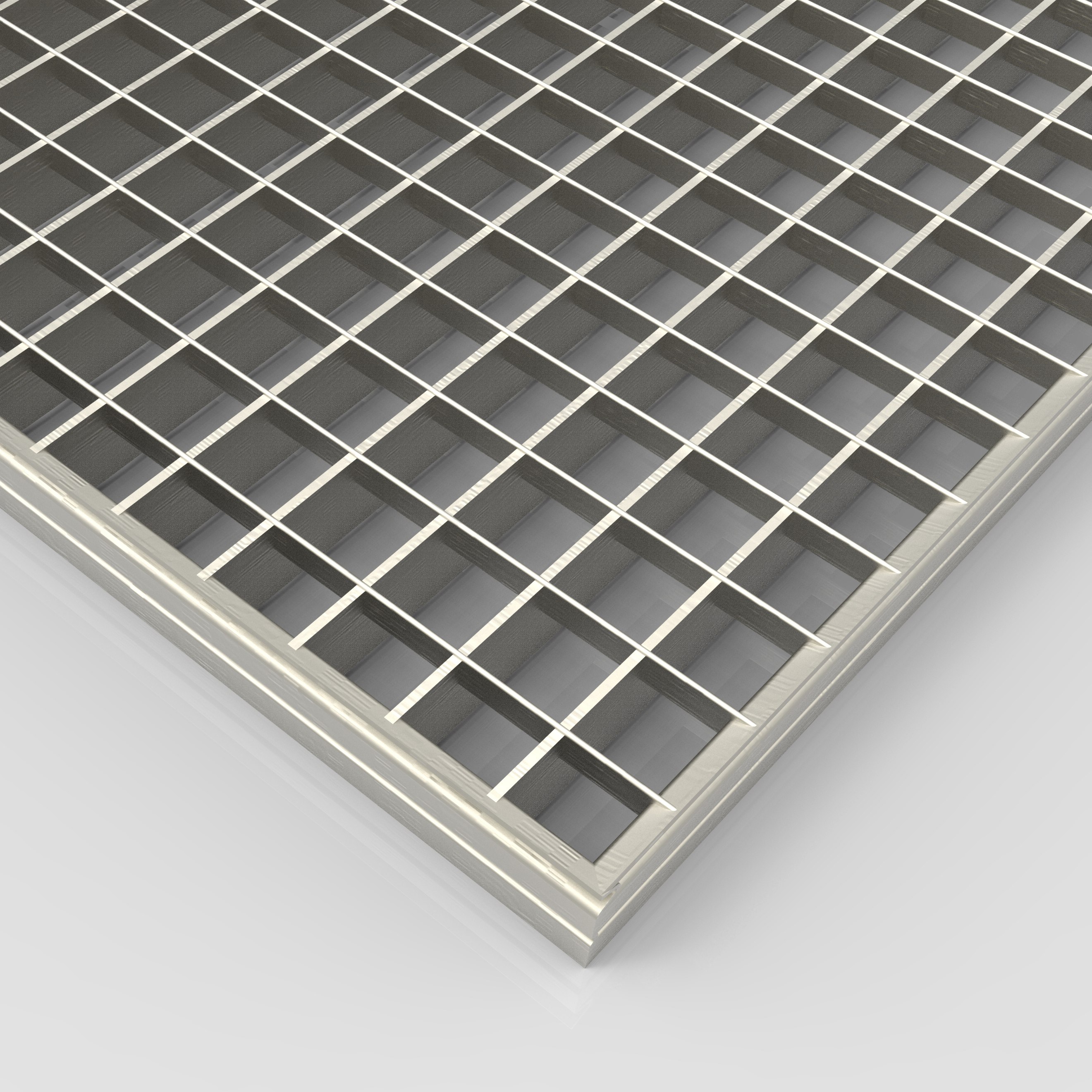 Les caillebotis pressés sont constitués de barres porteuses et de barres de liaison en acier, inox, aluminium. Les barres de liaison sont insérées dans les barres porteuses par pression, une bordure est ensuite soudée sur toute la périphérie du caillebotis garantissant ainsi une grande