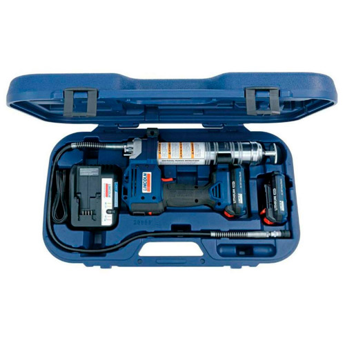 Pistolet de graissage électrique Lincoln PowerLuber 20V livré : avec 2 batteries Li-ion, 1 chargeur, 1 coffret de transport