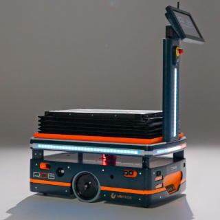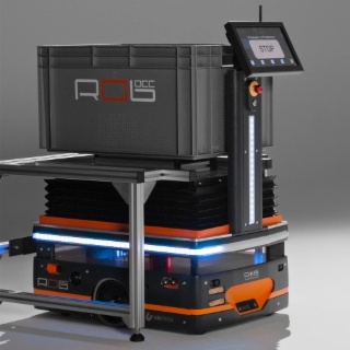 prend en charge de manière totalement autonome les caisses, rolls et étagères logistiques pour les