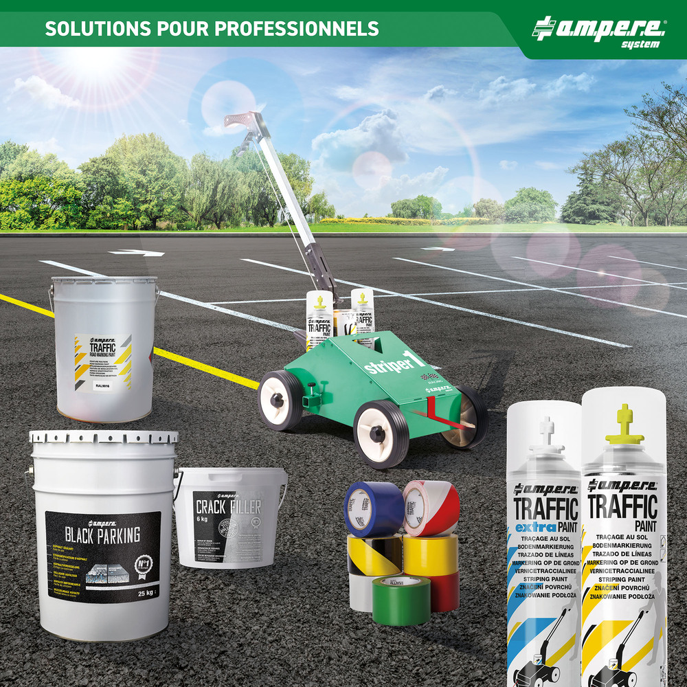 Depuis 1975 A.M.P.E.R.E System, société française basée à Saint Ouen-l‘Aumône est leader européen sur le marché du traçage de ligne. La technologie innovante de nos produits, ainsi que notre savoir faire logistique sont la base de notre succès. Pour vos opérations de sécurisation, nous vous proposons une gamme complète de produits dans les domaines :